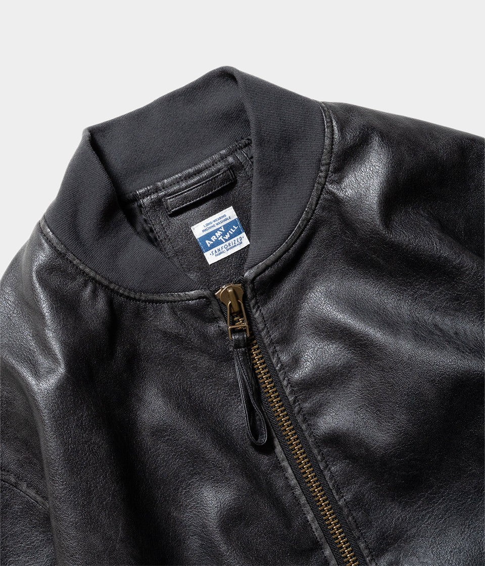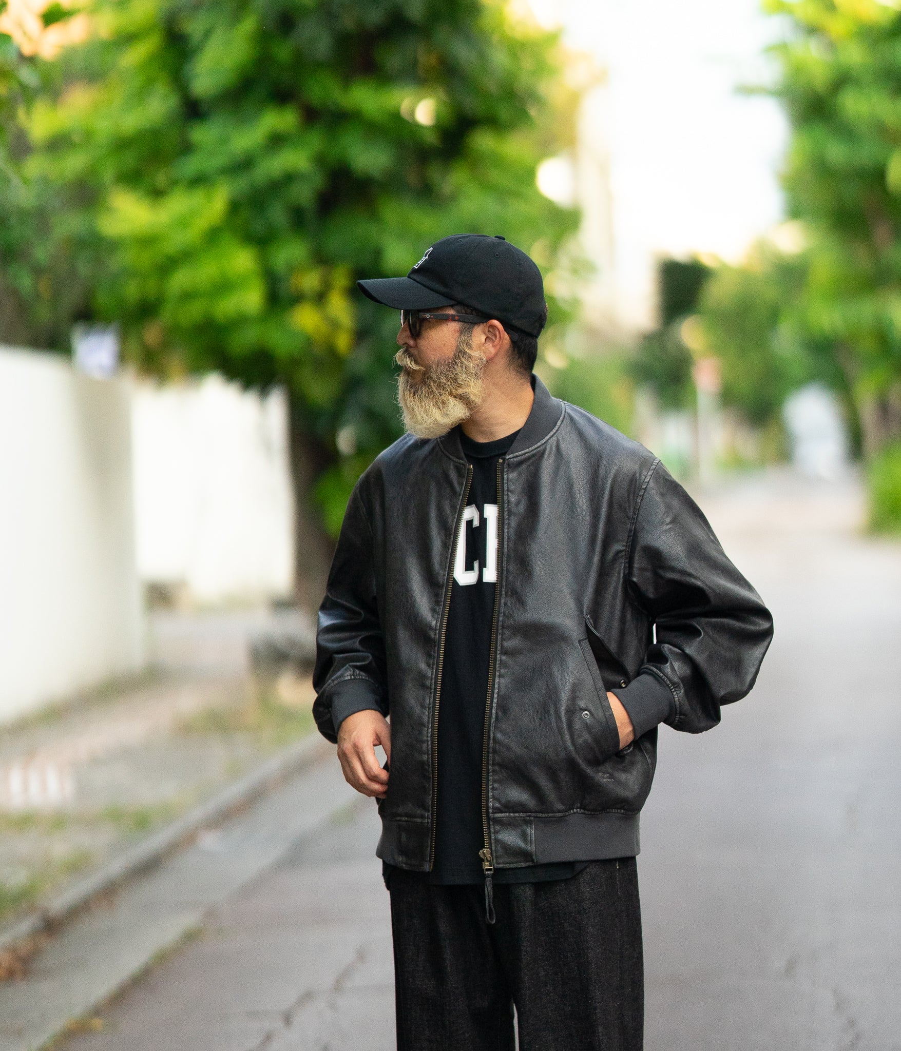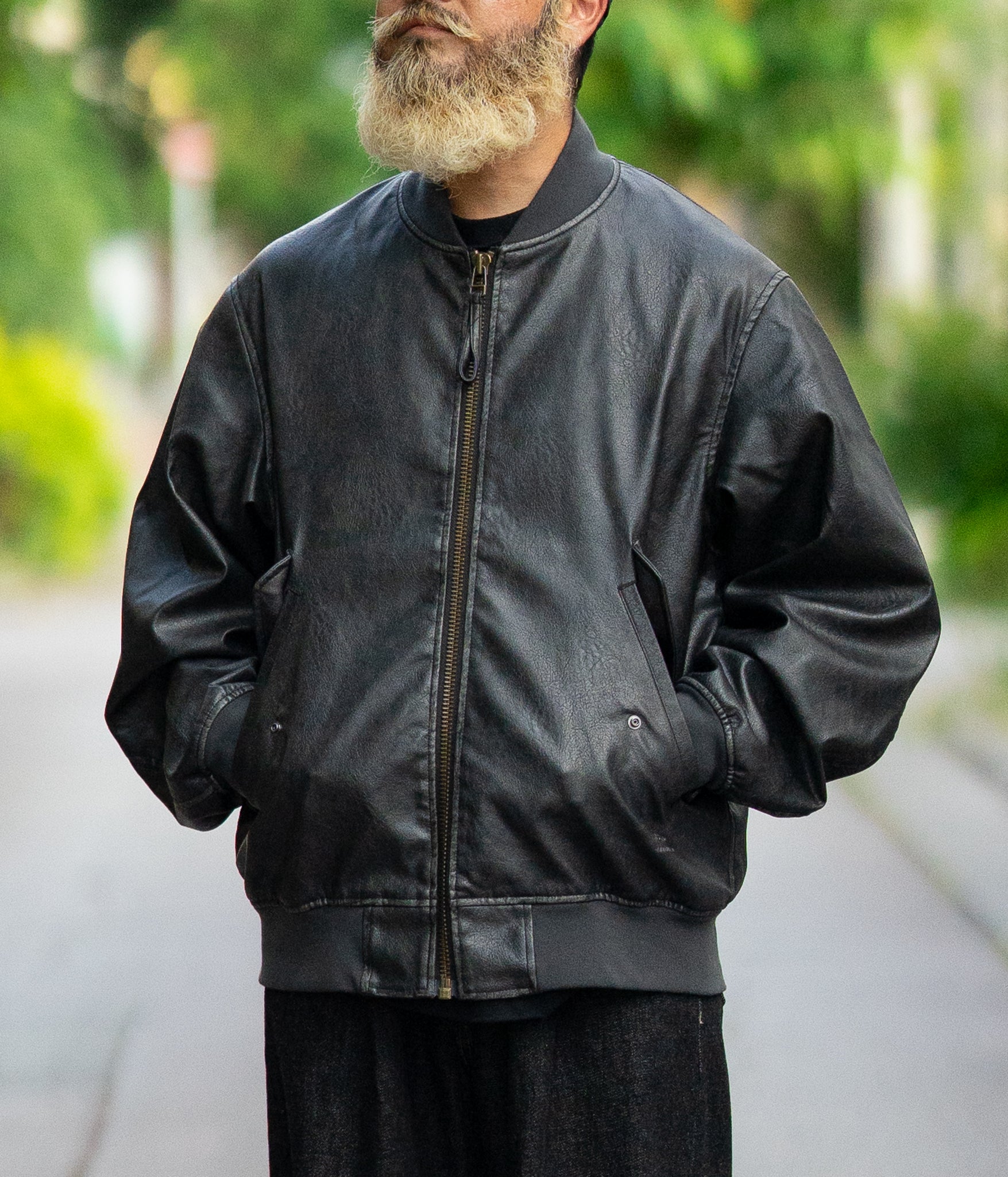 アメリカのフライトジャケットを彷彿させるデイティールを現代のシルエットで再構築したブルゾン。少し丸みを帯びたシルエットは程よい柔らかさと抜け感を感じることができる。