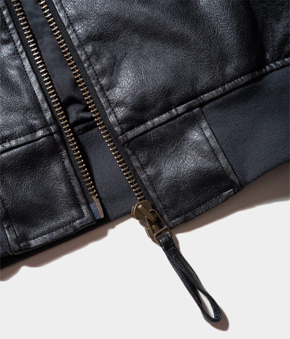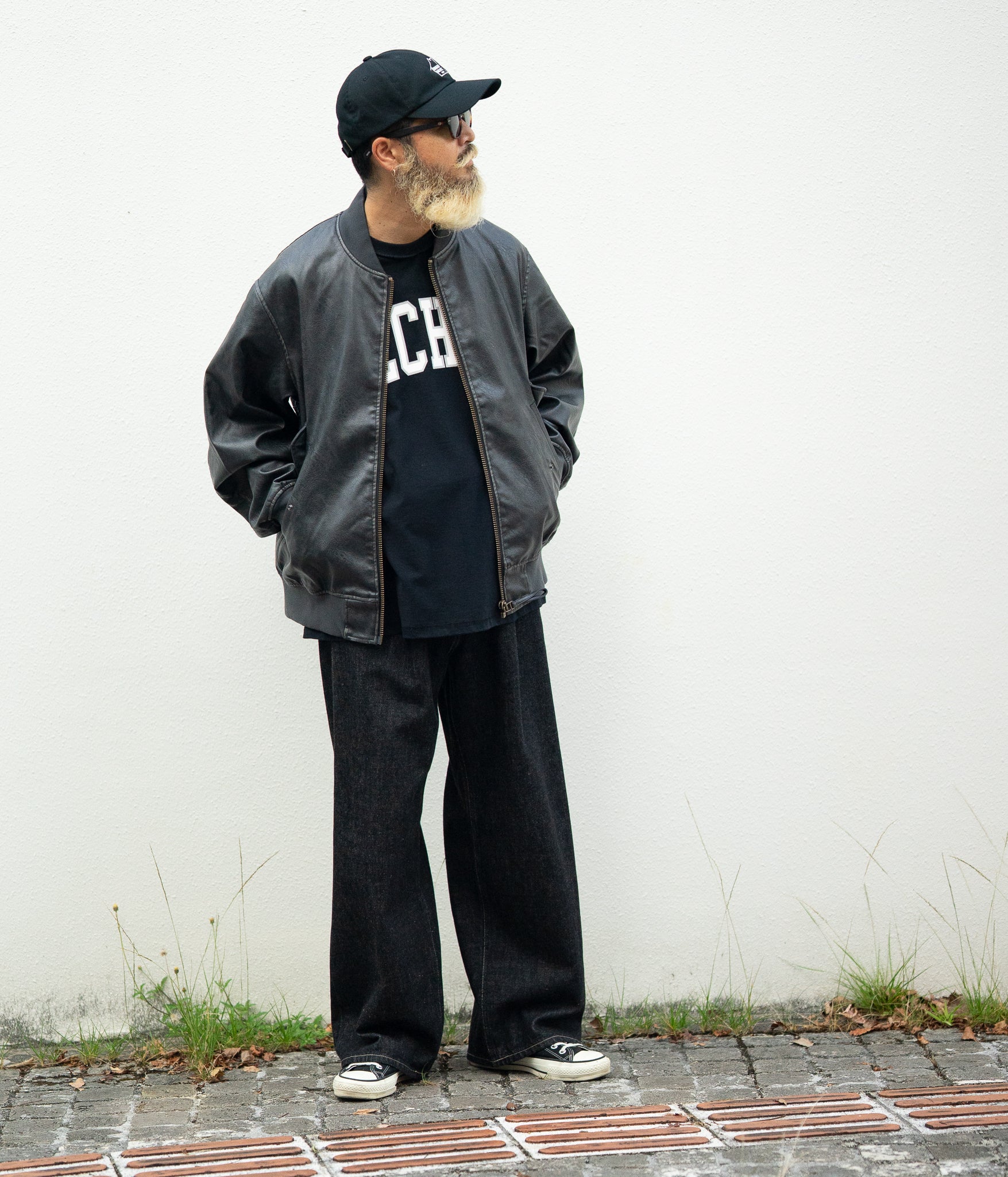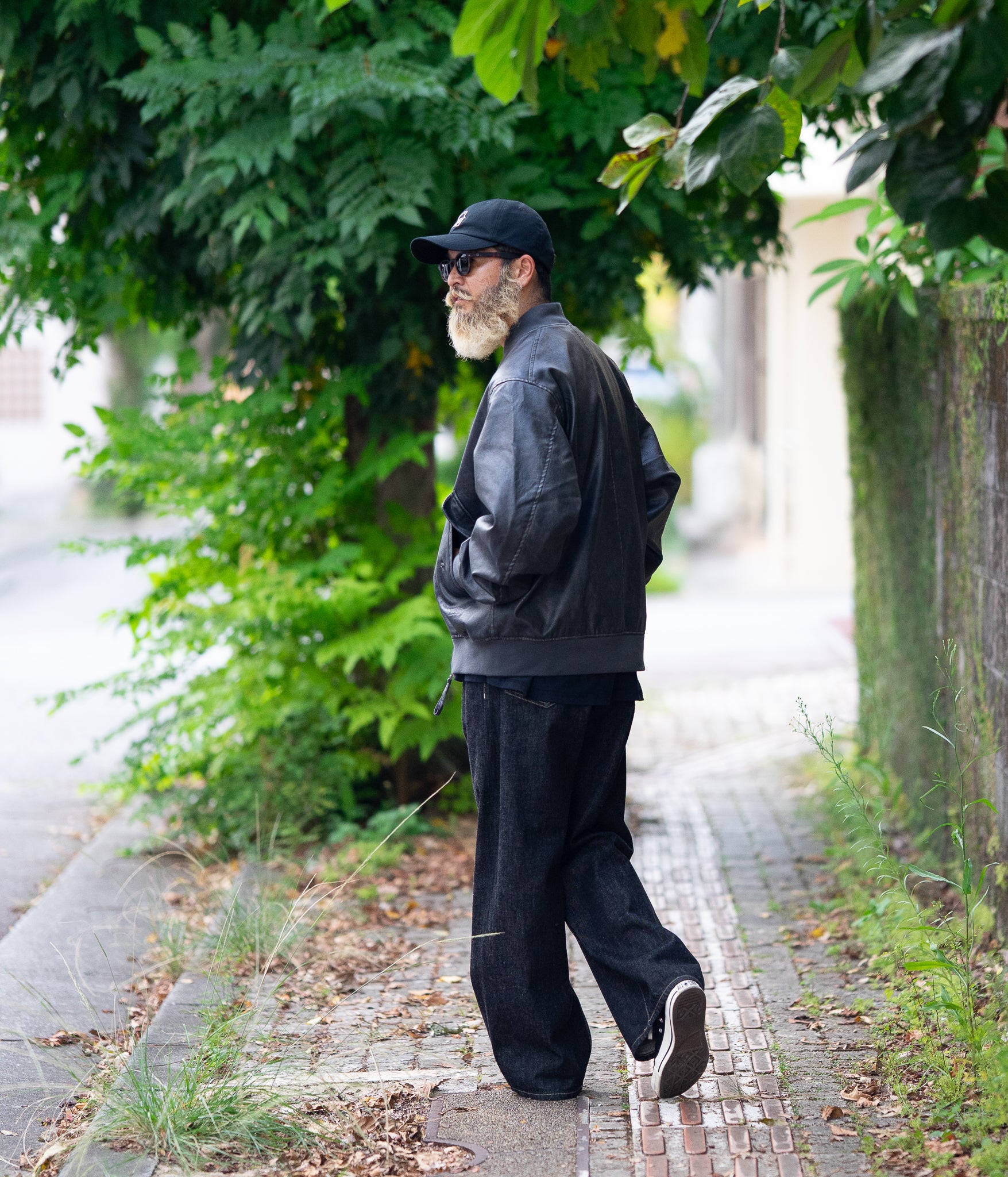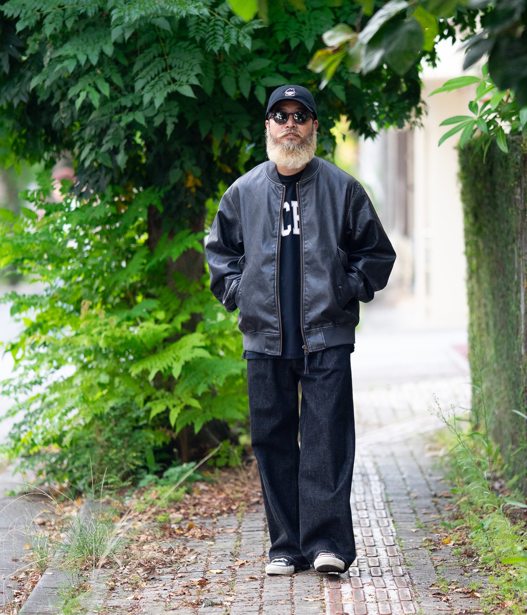 アメリカのフライトジャケットを彷彿させるデイティールを現代のシルエットで再構築したブルゾン。少し丸みを帯びたシルエットは程よい柔らかさと抜け感を感じることができる。
