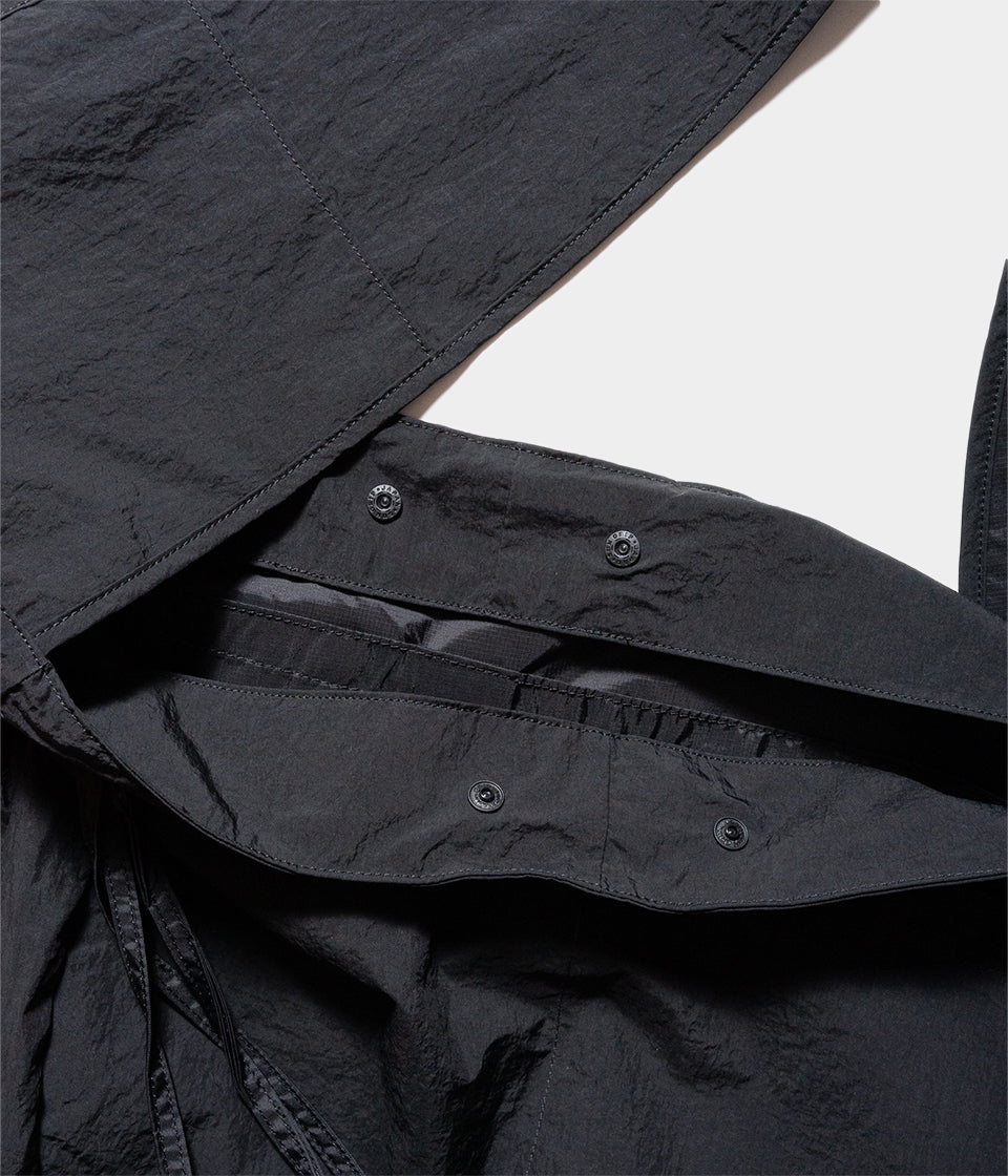 ・表生地は100Dナイロンをワッシャー加工したコーデュラ生地を使用しております。表面のシワ感が他にはない独自の風合いを表現しております。生地には撥水加工されております。