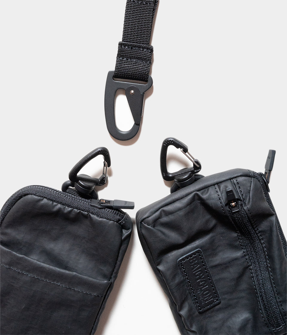 ウォレット単体で使用する場合にフックパーツを使用しないので、中に隠すことができます。