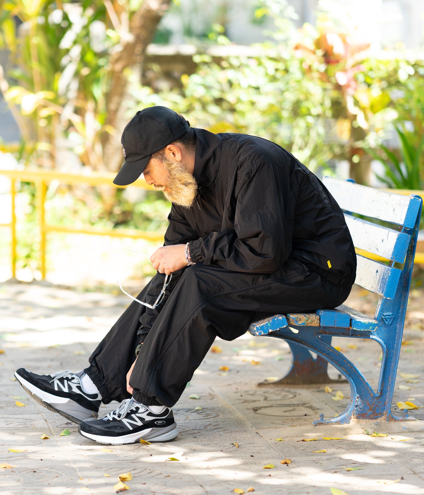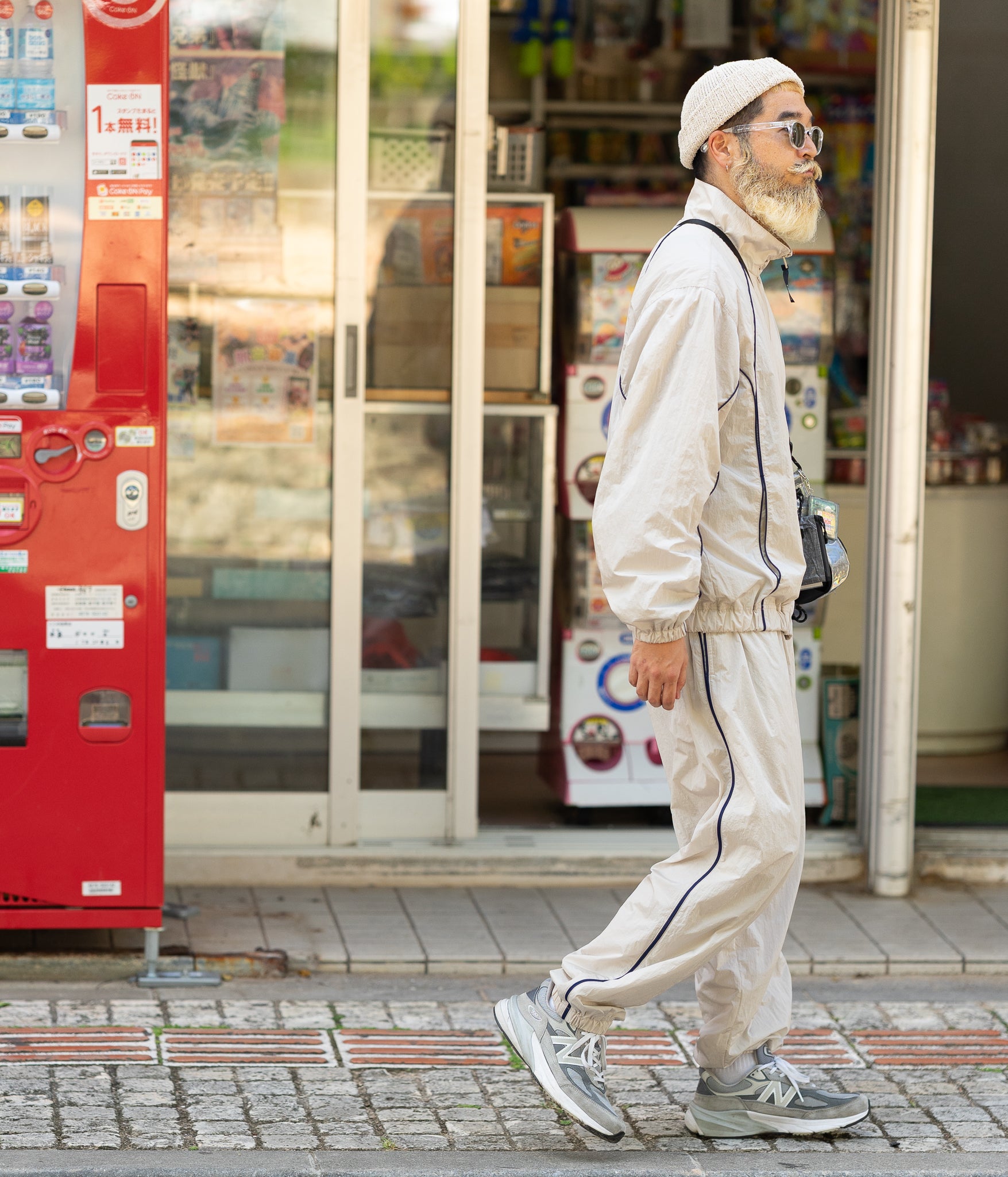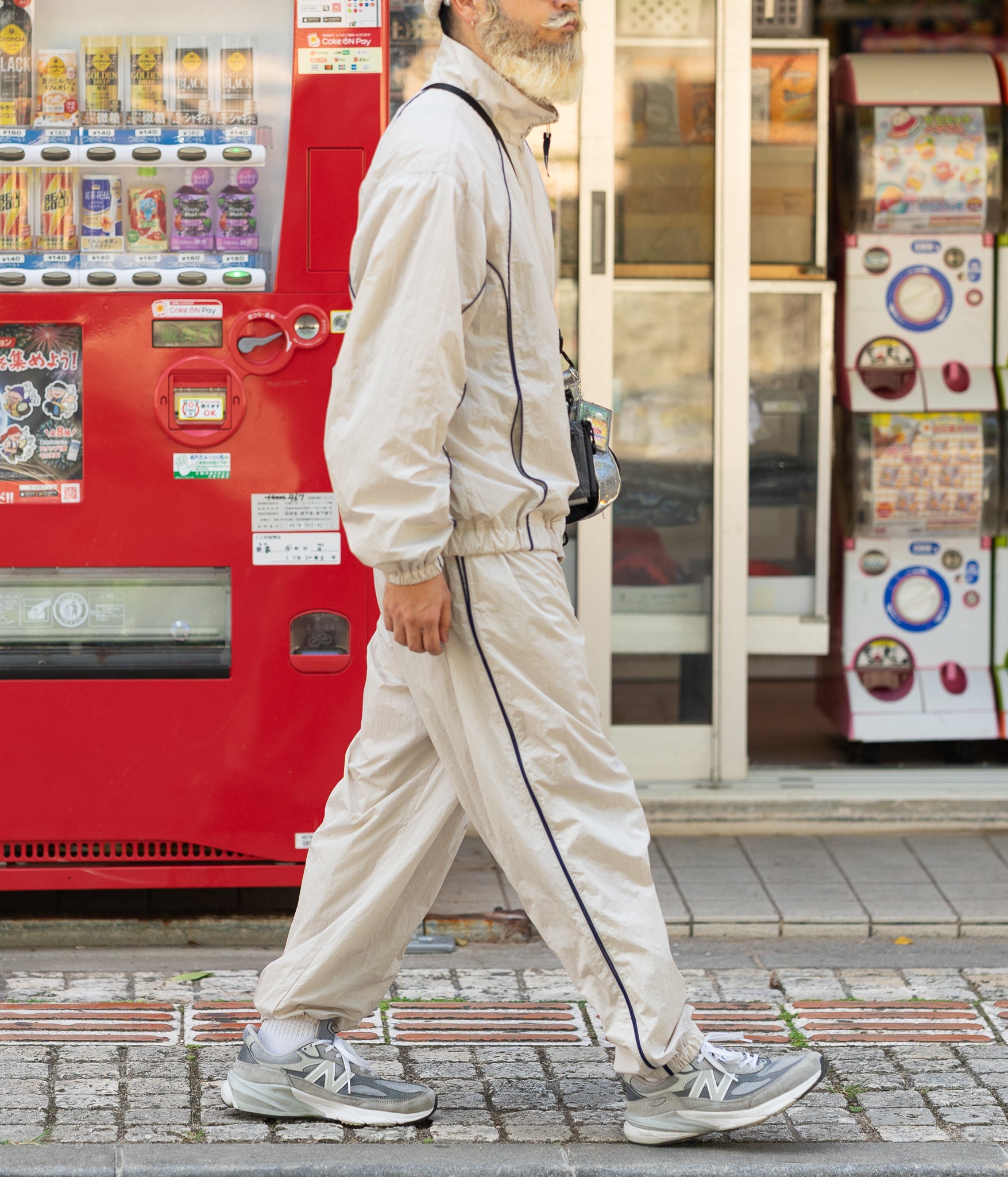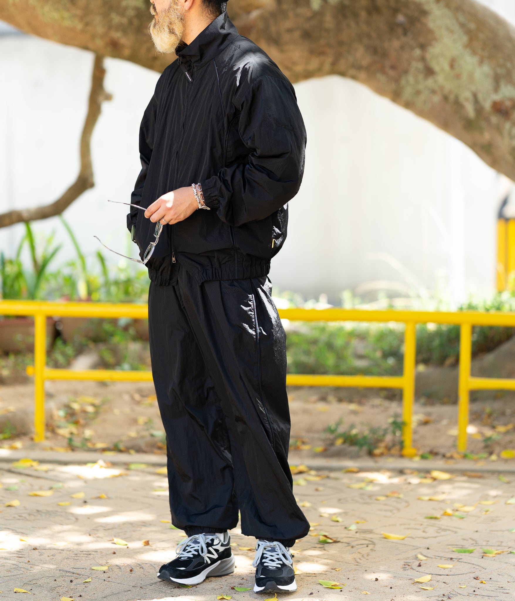 同素材のトラックジャケットとのセットアップでの着用がおすすめです。