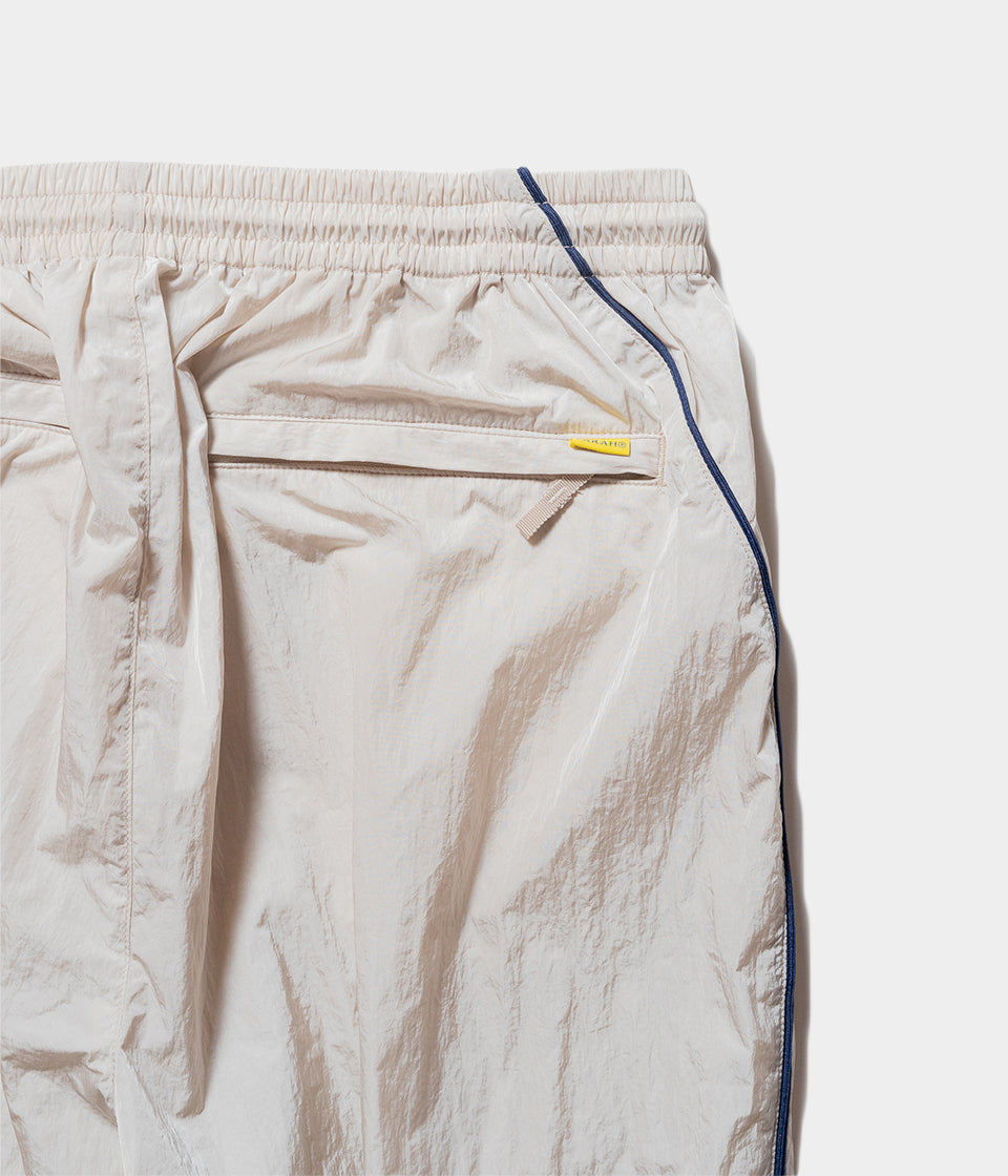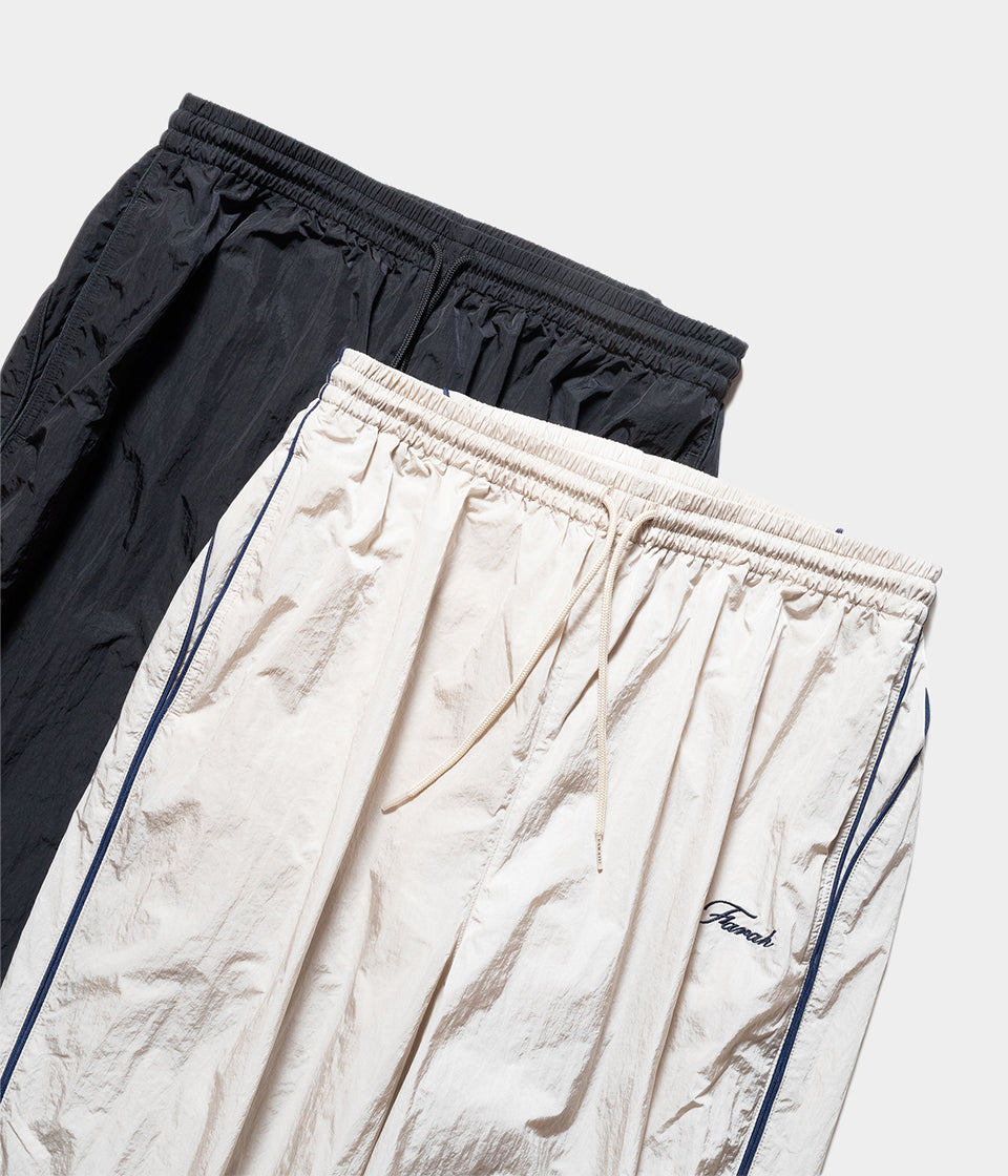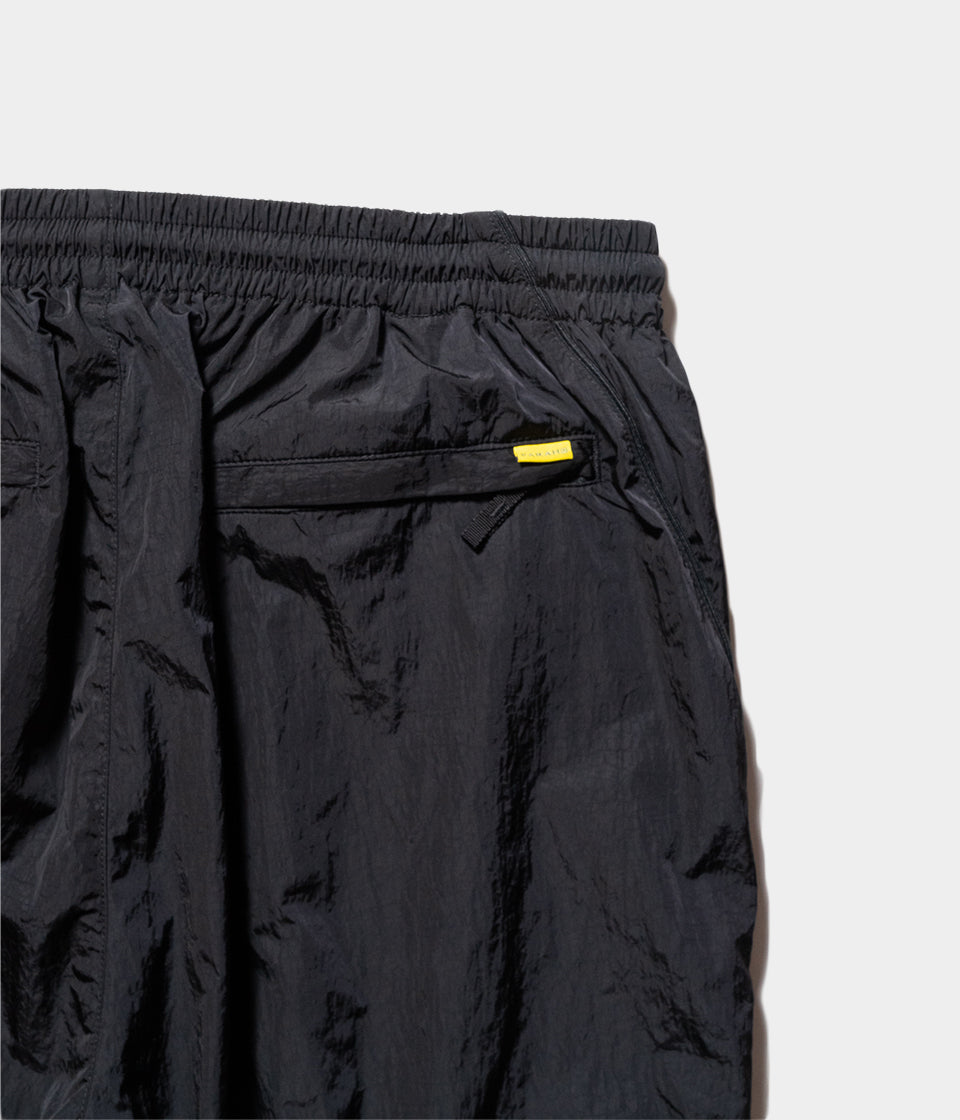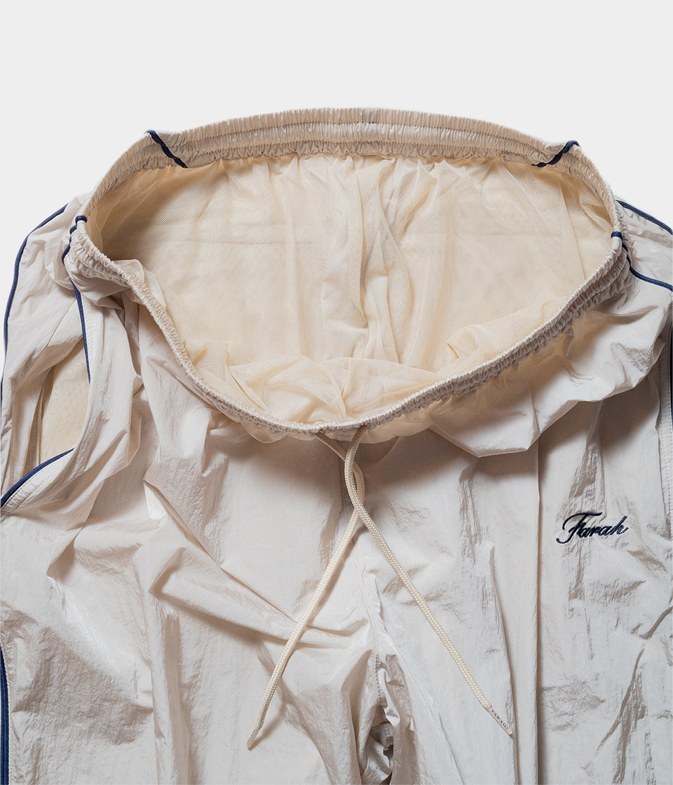 40Dナイロンを使用しており、裏地もメッシュでライトな着心地です。パイピングがいいアクセントとなり、上品な光沢感がありながらも陰影が生まれるヴィンテージワッシャー加工が施されています。ウエストはドローコードで調節可能。フロント部分にはワンポイントでFARAHの刺繍が入ります。