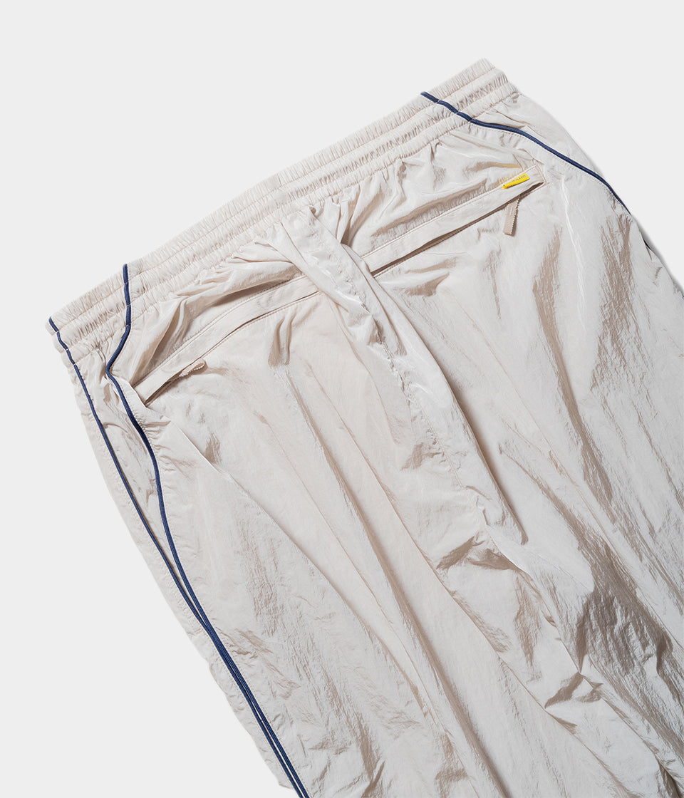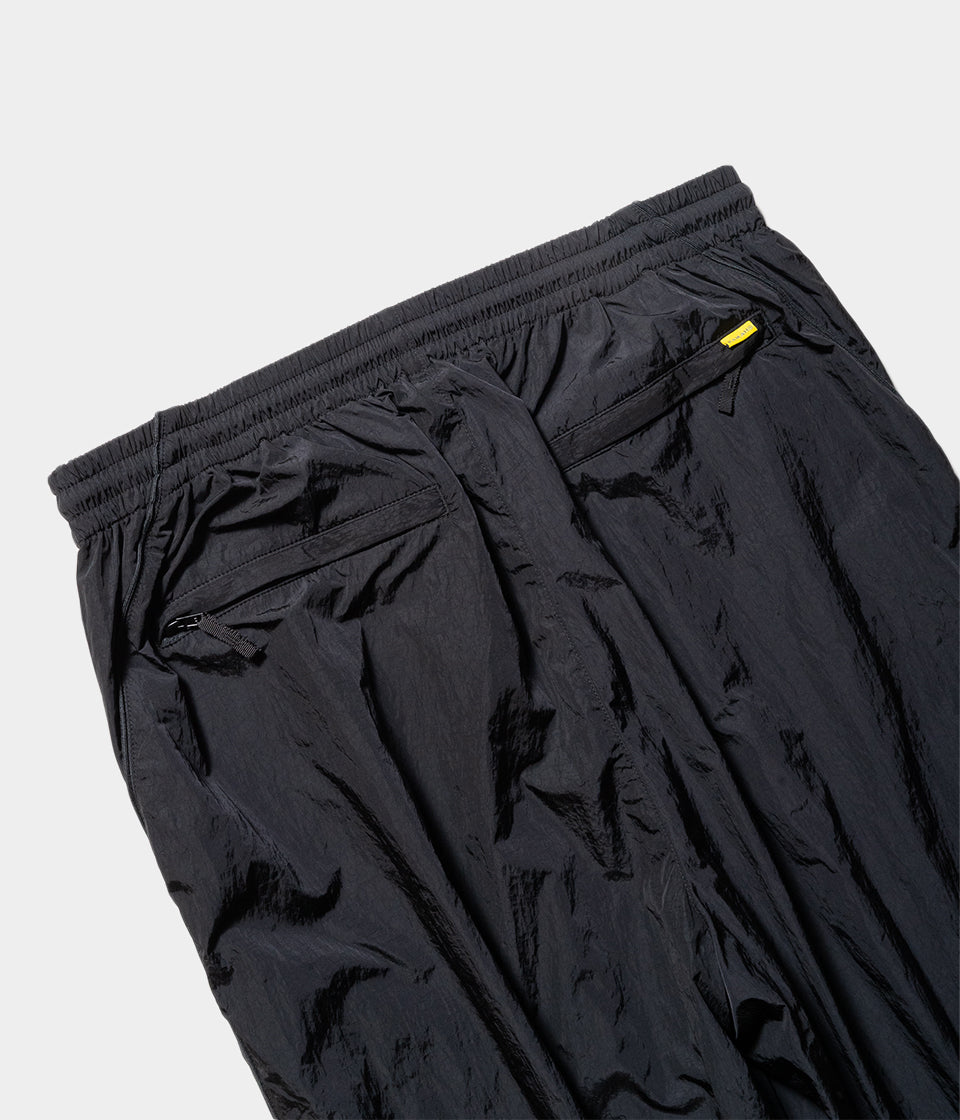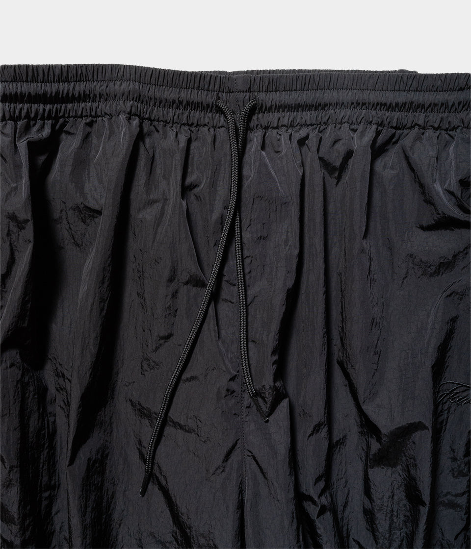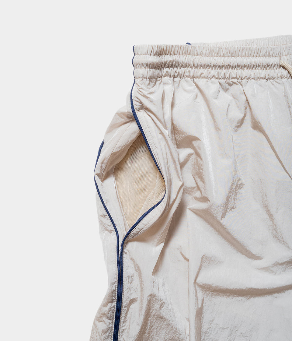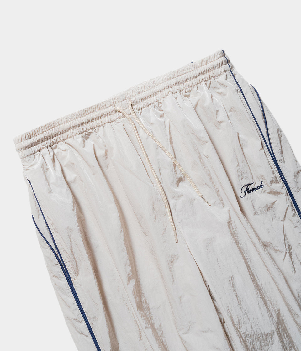 40Dナイロンを使用しており、裏地もメッシュでライトな着心地です。パイピングがいいアクセントとなり、上品な光沢感がありながらも陰影が生まれるヴィンテージワッシャー加工が施されています。ウエストはドローコードで調節可能。フロント部分にはワンポイントでFARAHの刺繍が入ります。