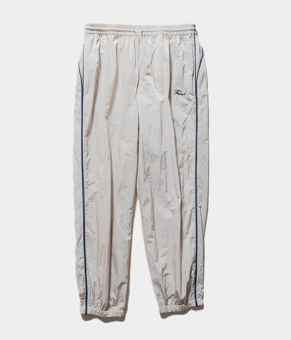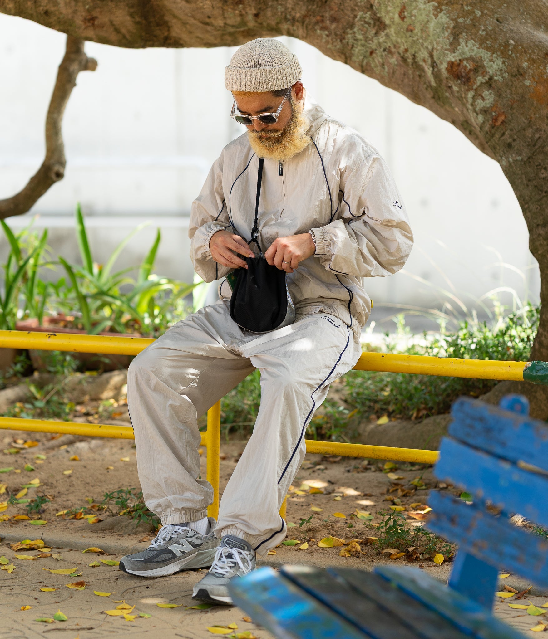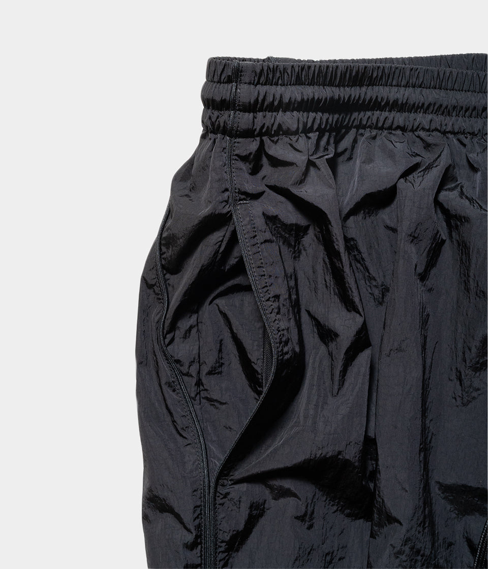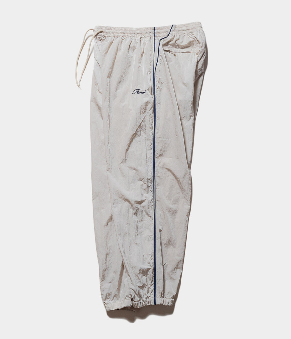 40Dナイロンを使用しており、裏地もメッシュでライトな着心地です。パイピングがいいアクセントとなり、上品な光沢感がありながらも陰影が生まれるヴィンテージワッシャー加工が施されています。ウエストはドローコードで調節可能。フロント部分にはワンポイントでFARAHの刺繍が入ります。