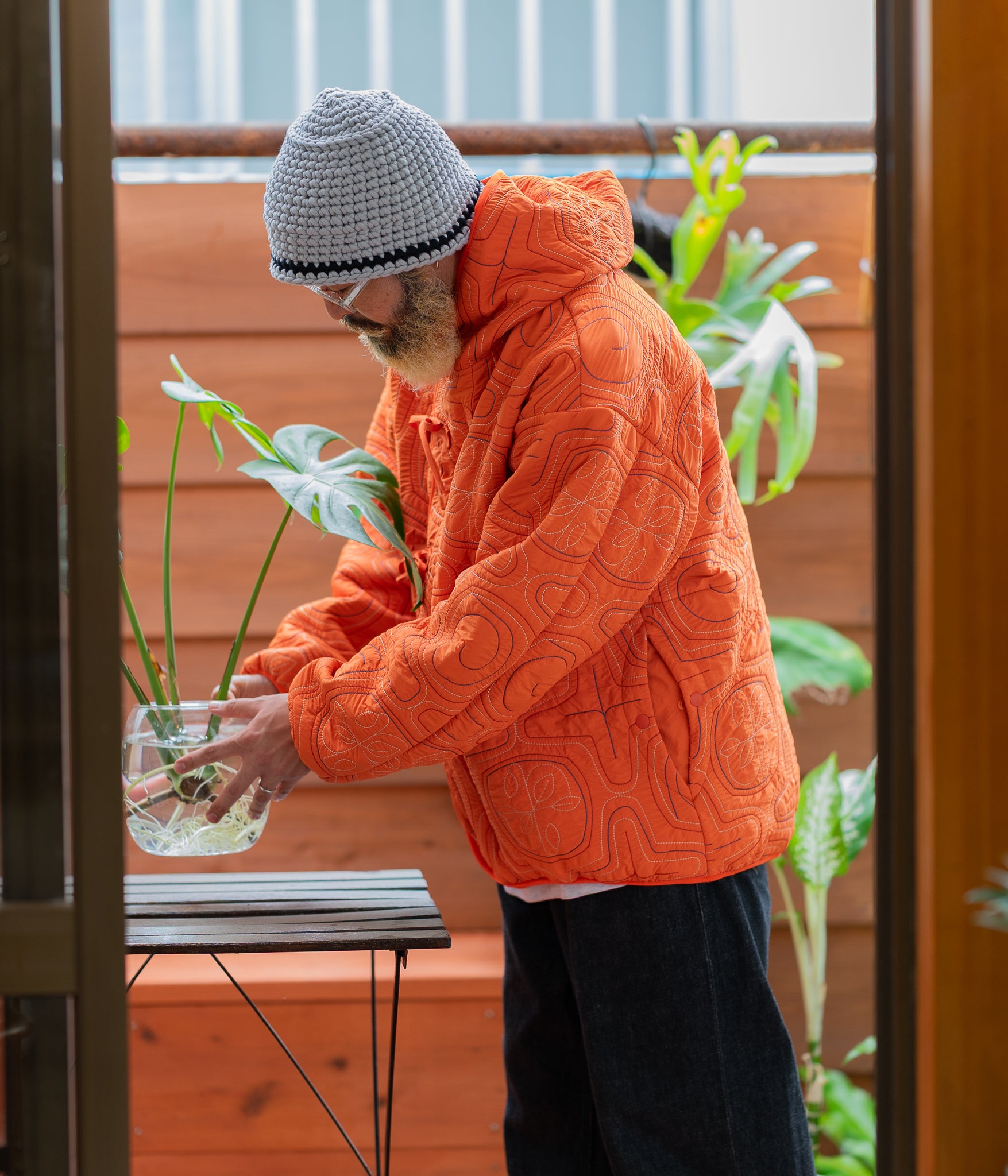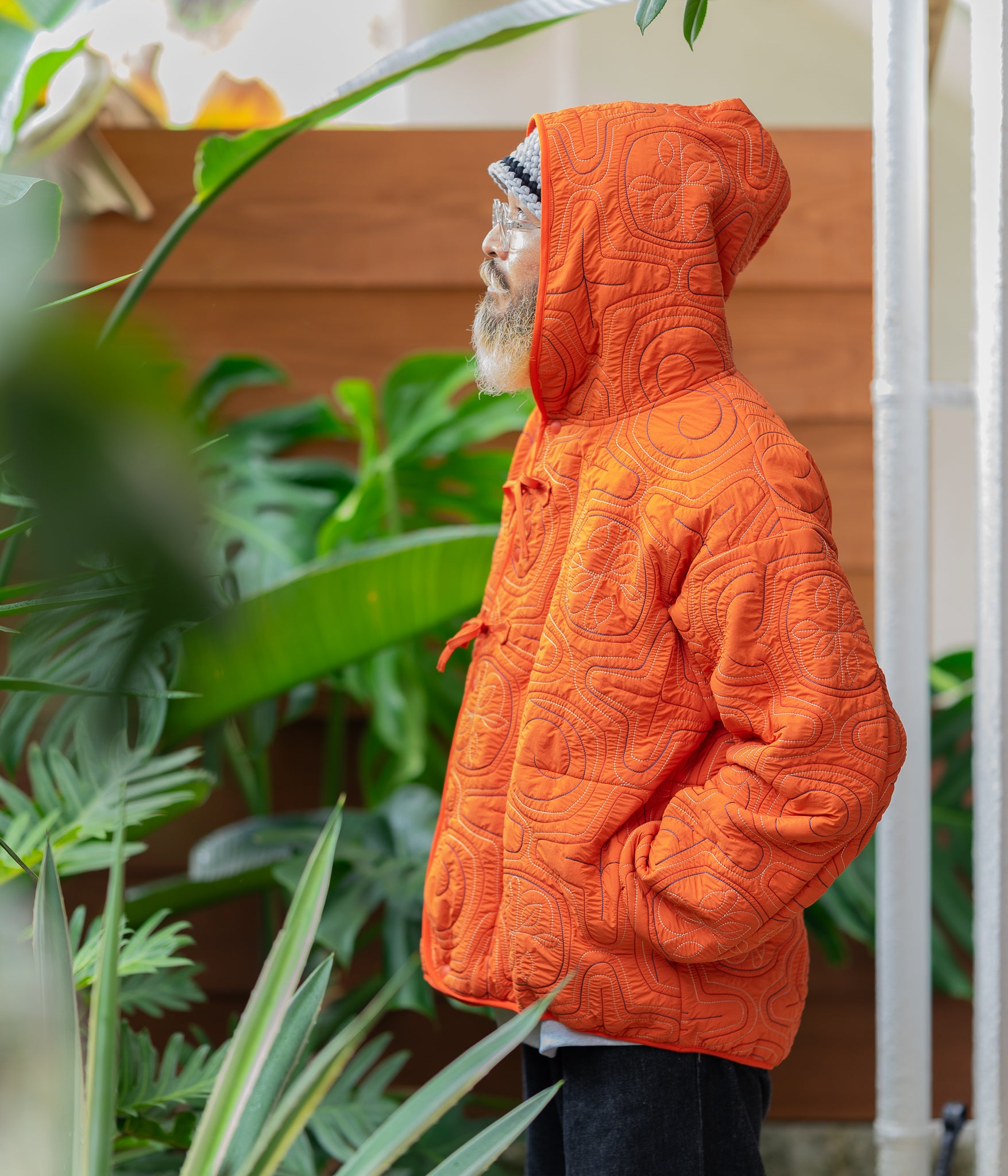 "Ainu quilted hood jacket"
