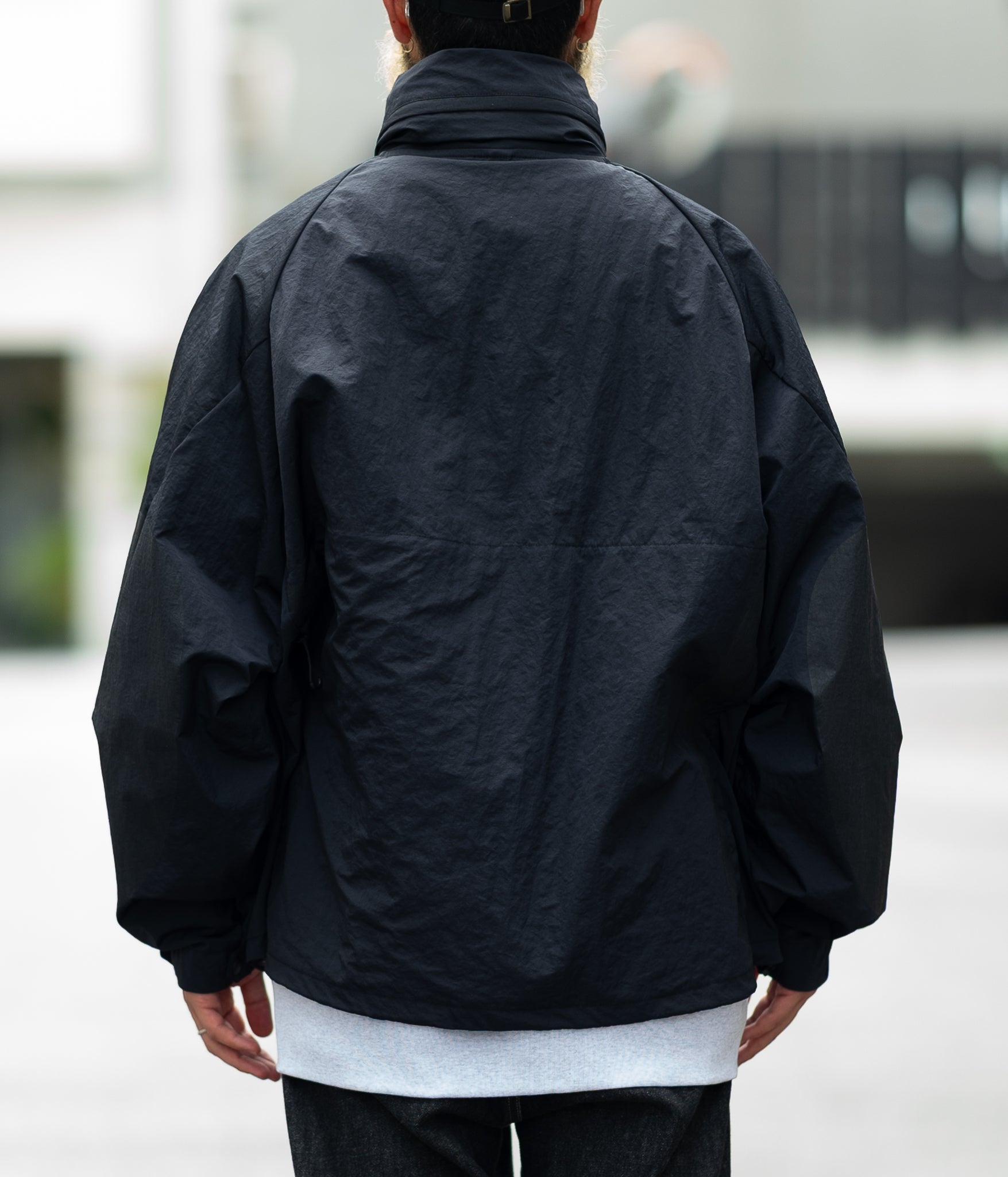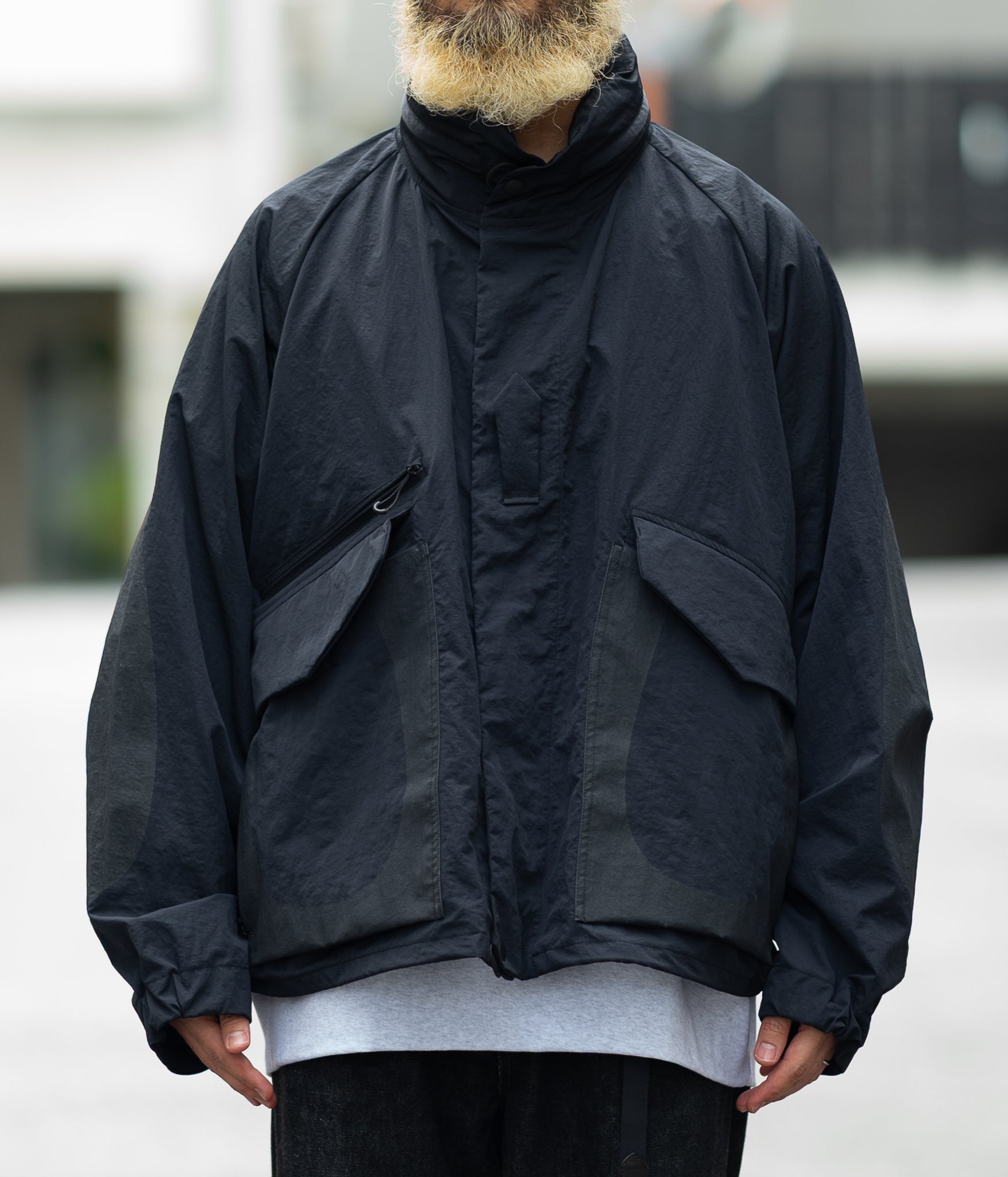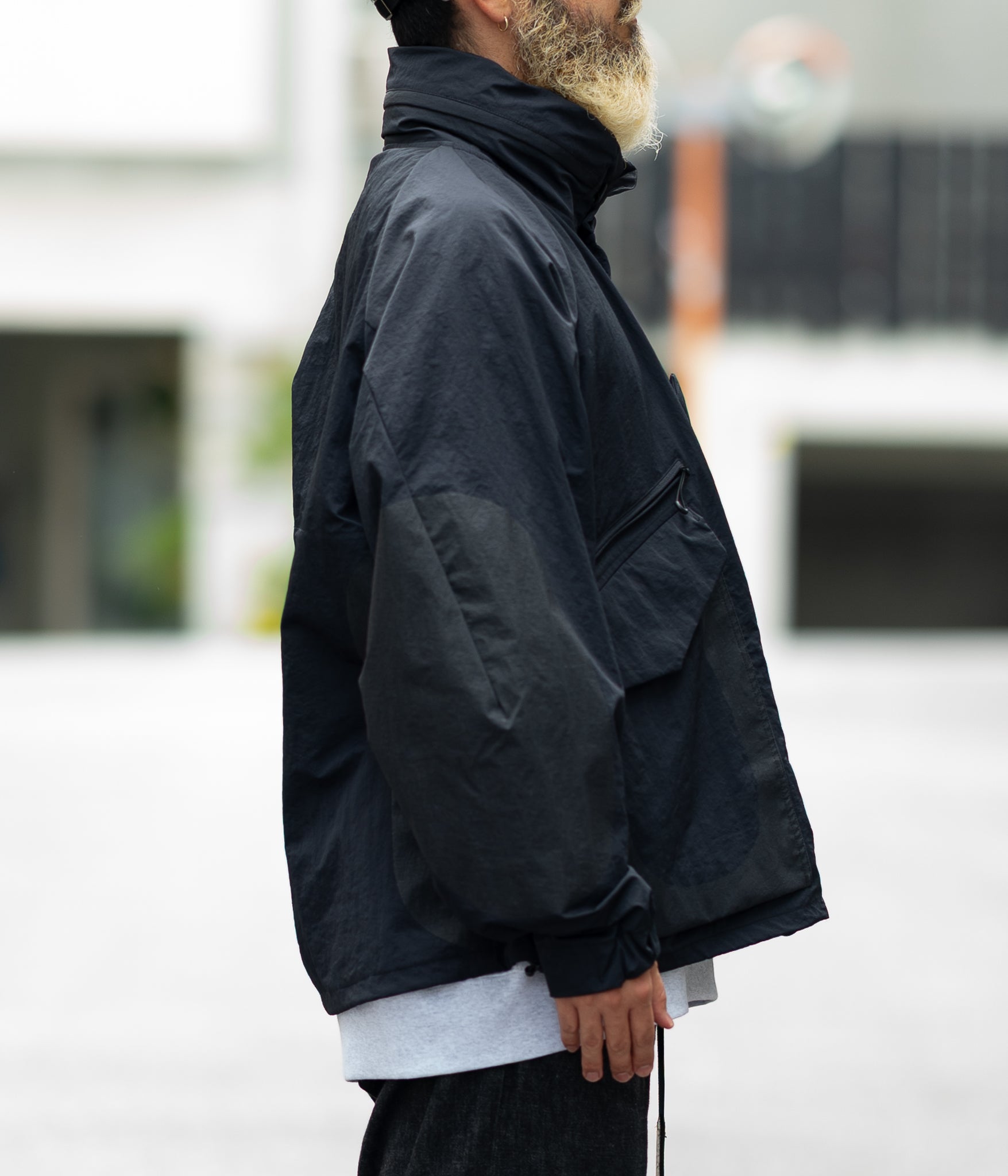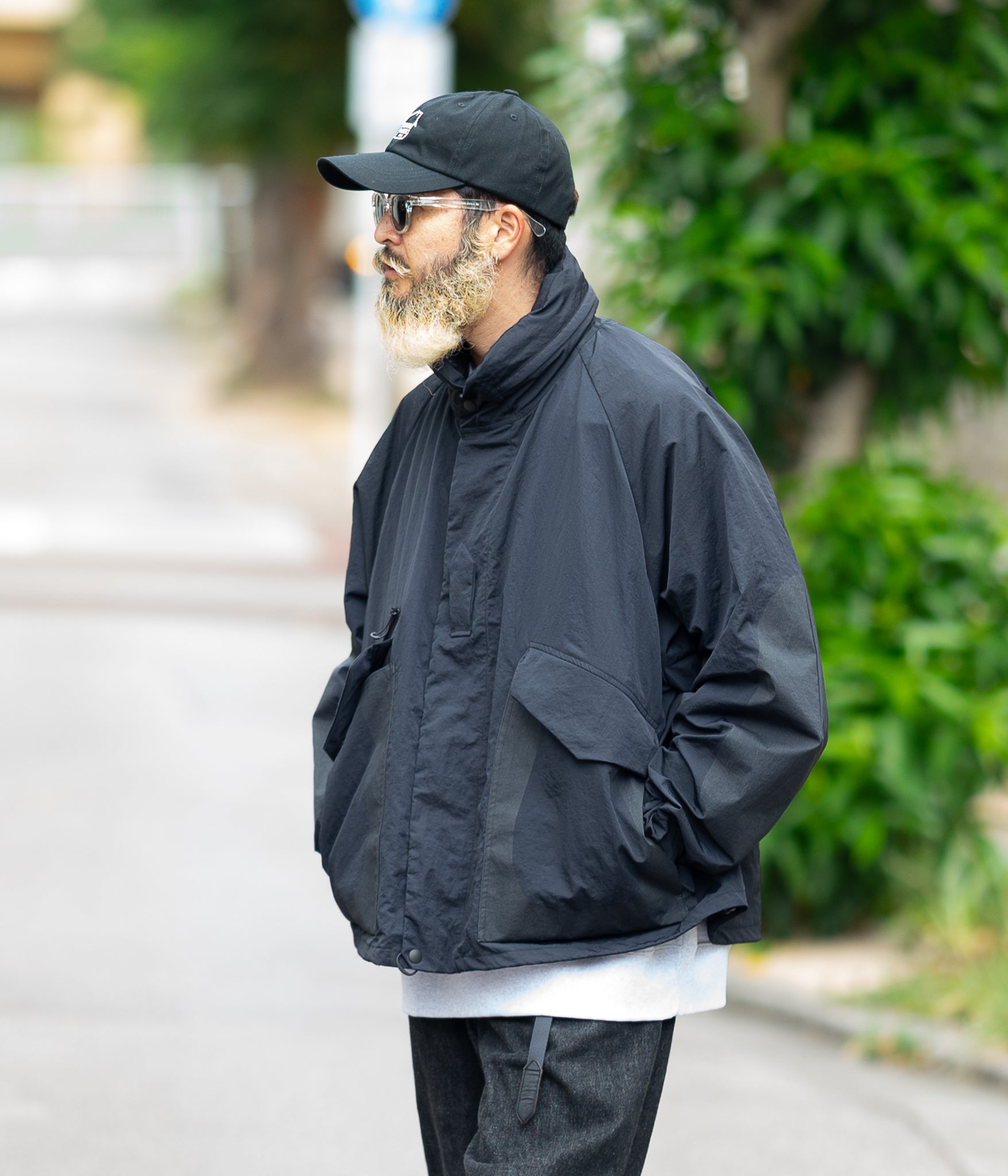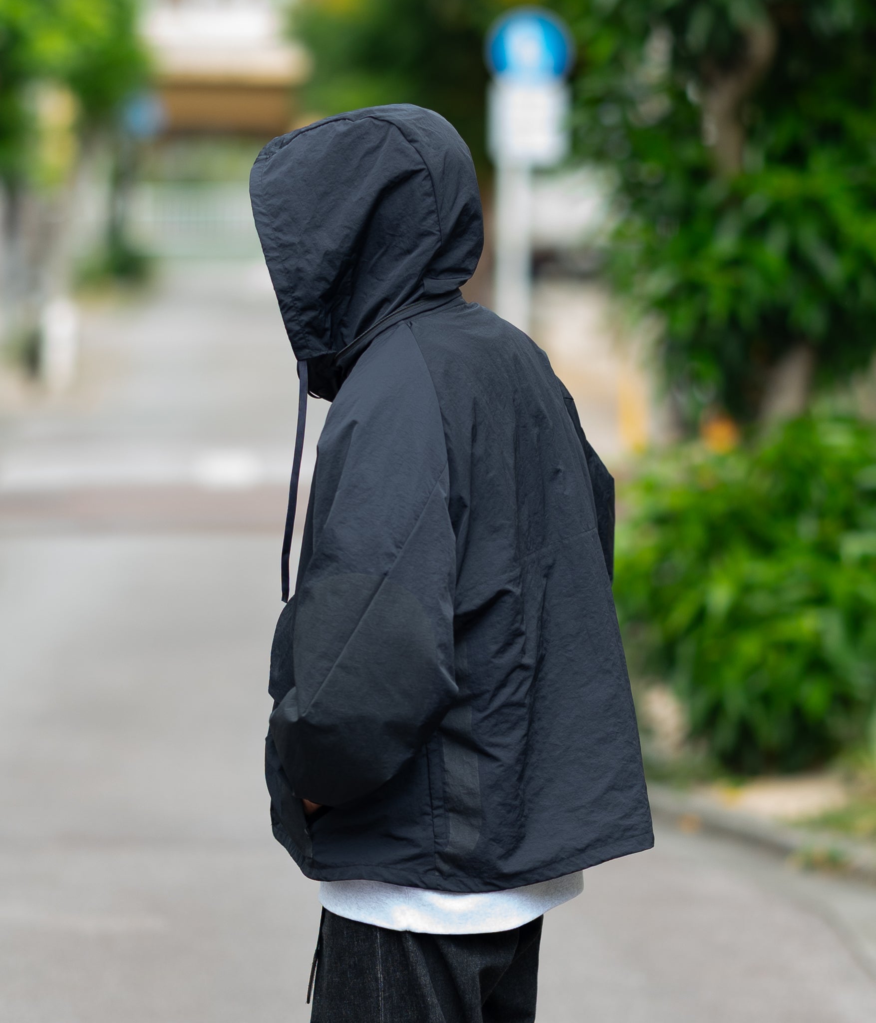 W/R 100%リサイクルナイロン(パウダータッチの塩縮ナイロン)使用のフィールドジャケット。エルボパッチ、ポケット入り口部に補強用プリントをデザインアクセントとして採用。ワイドショートシルエットでフード収納型スタンドカラー、フロントポケットはウォームポケット付き3ウェイ、バックポケットはゲームポケットとnoritらしいポケットワークも特徴のアイテムです。