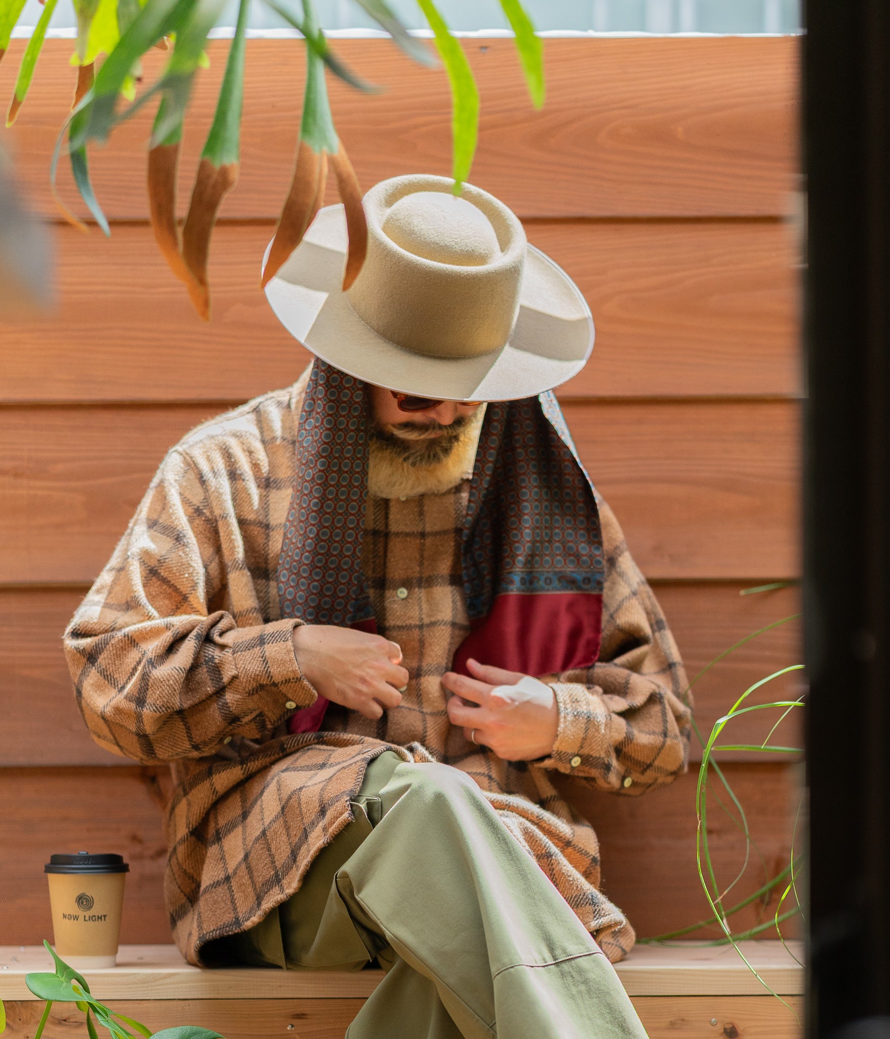 NƏW LIGHT로 취급이 있는 THE PORK PIE의 모자에 조합해 사용해 주시는 것도 좋고, 스톨로서 목에 감거나 스타일링의 악센트에 사용하실 수 있습니다.