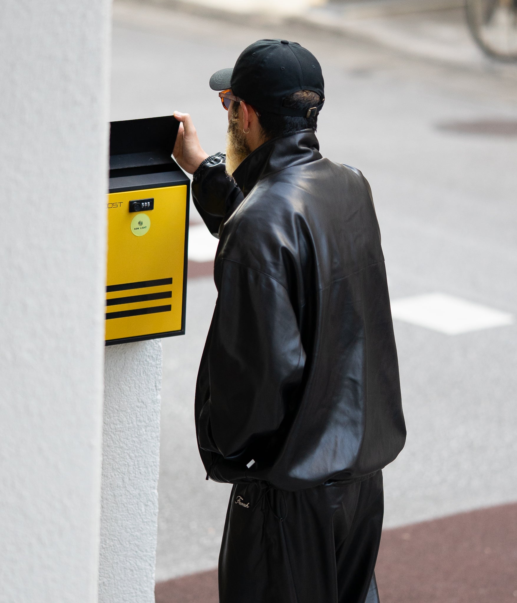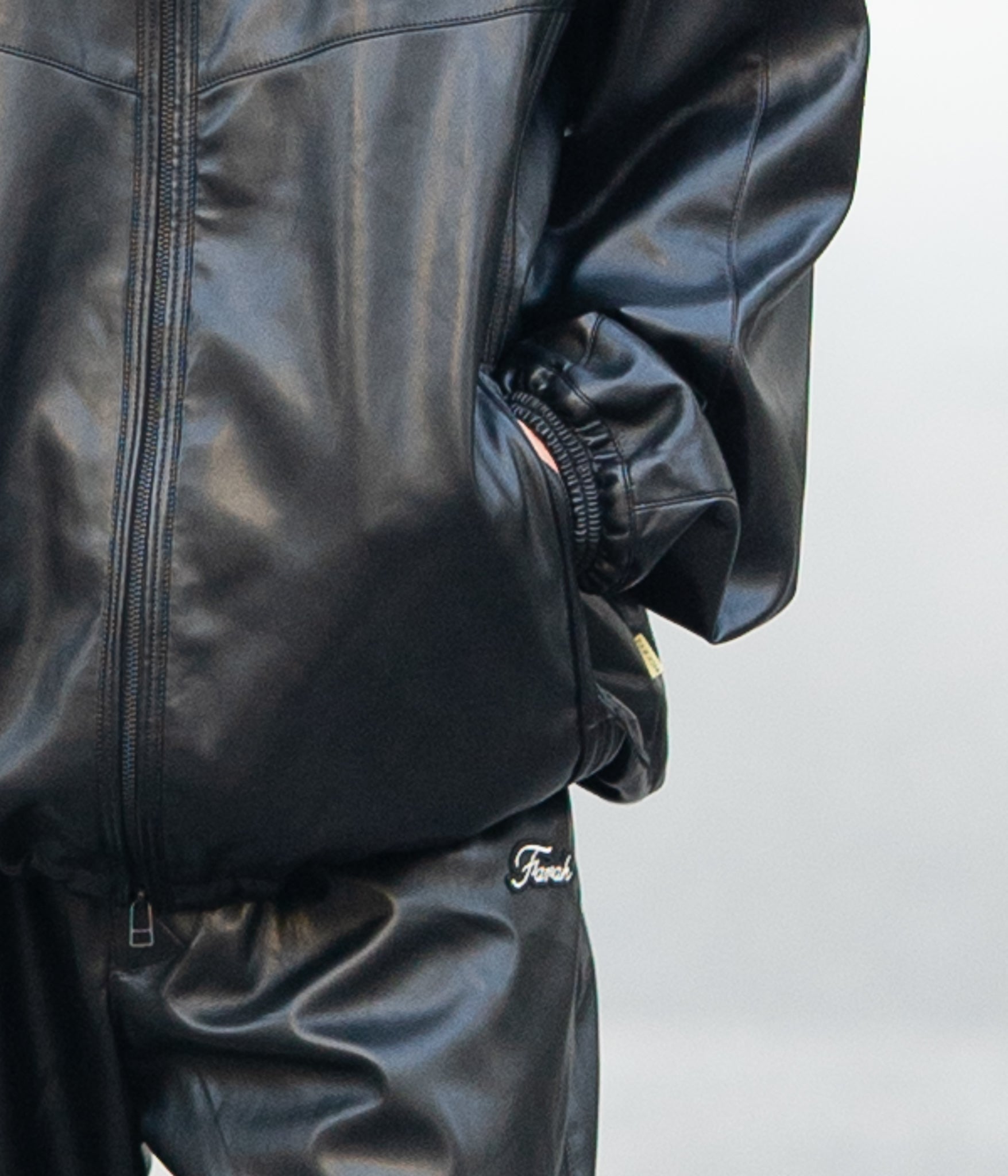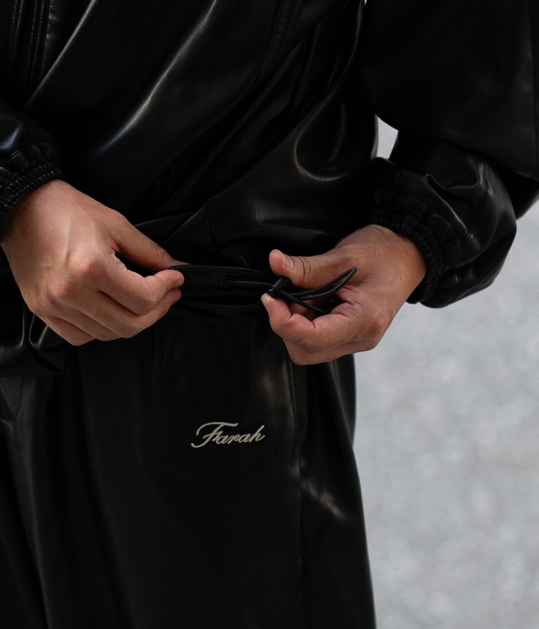 同素材のジョガーパンツとのセットアップでの着用がおすすめです。
