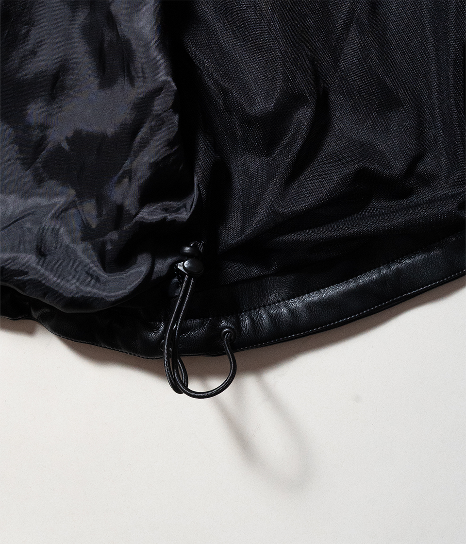柔らかな質感で独特なドレープが美しいシンセティックレザーに、内側は肌あたりの良いメッシュ素材で快適に着用いただけます。