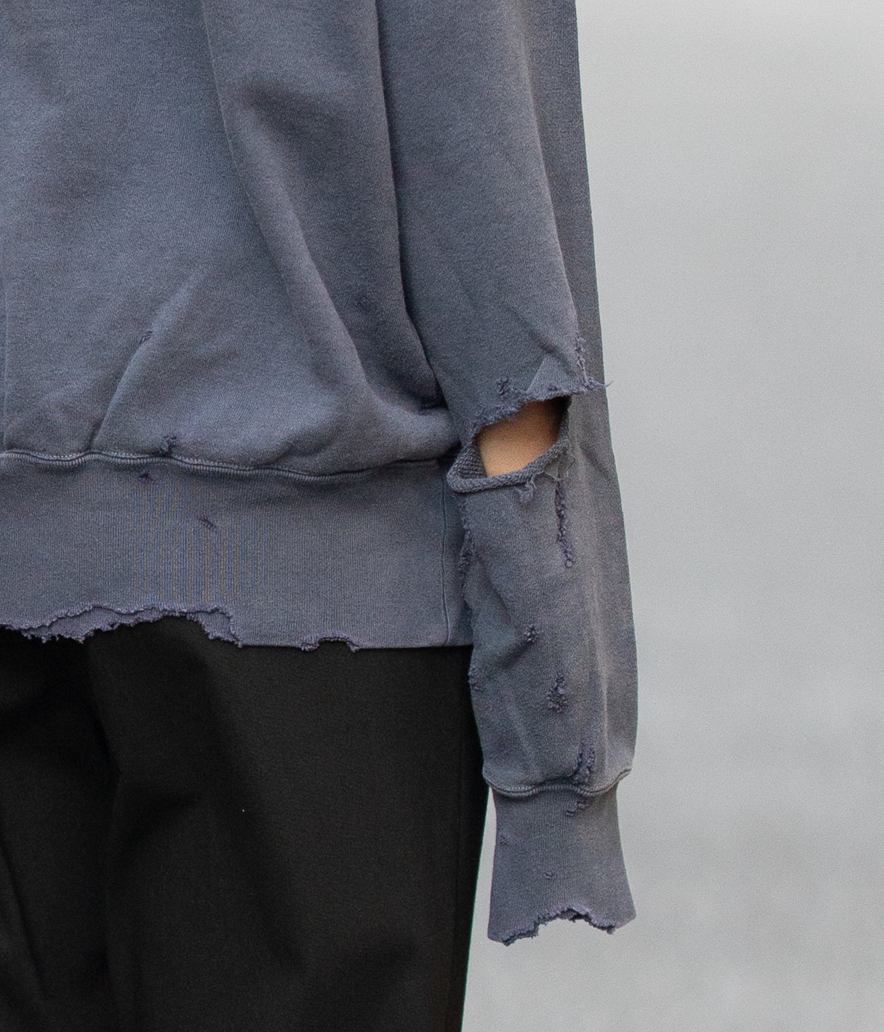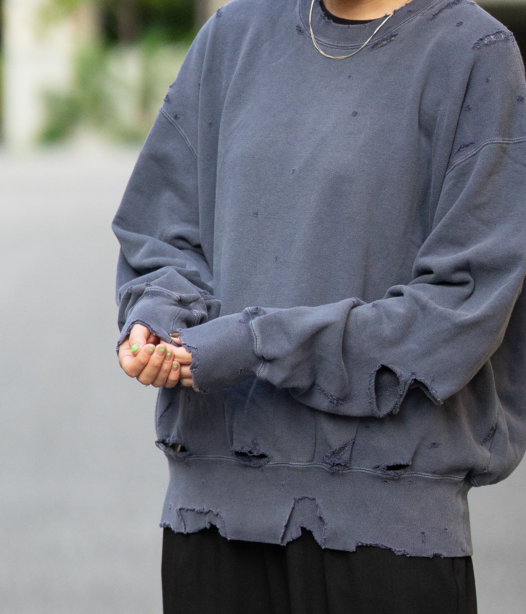 KURO "MORE DAMAGE WASHED CREW NECK SWEAT"